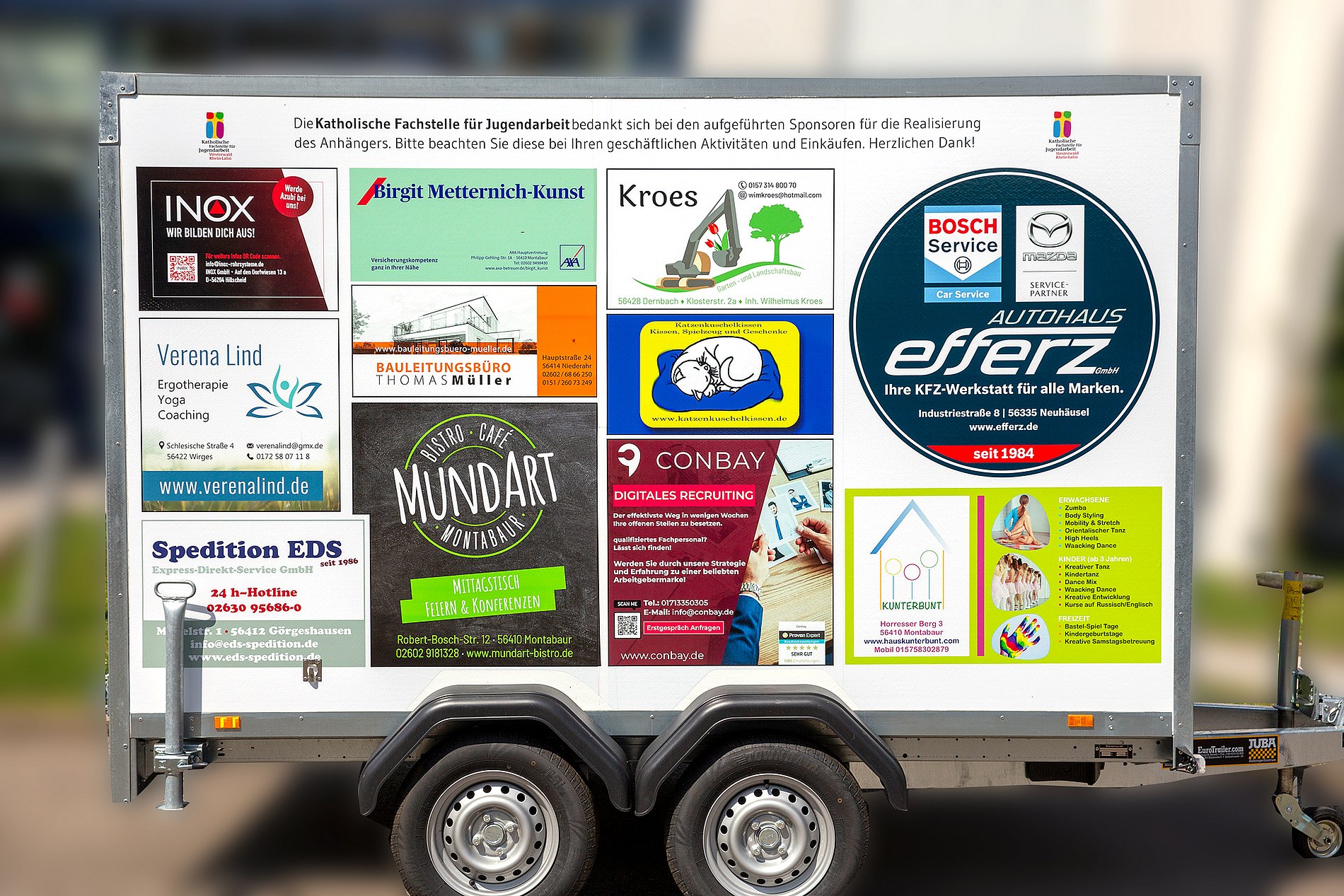 Wir sagen VIELEN DANK an die aufgelisteten Sponsoren für die Realisierung des Anhängers. Bitte beachten Sie diese bei Ihren geschäftlichen Aktivitäten und Einkäufen.